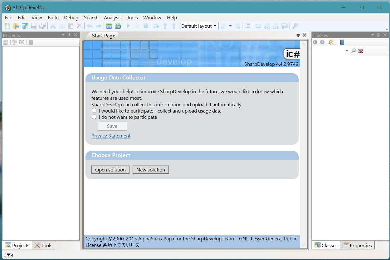 さっそく、SharpDevelopを起動してみると、原版(英語版)だ!。